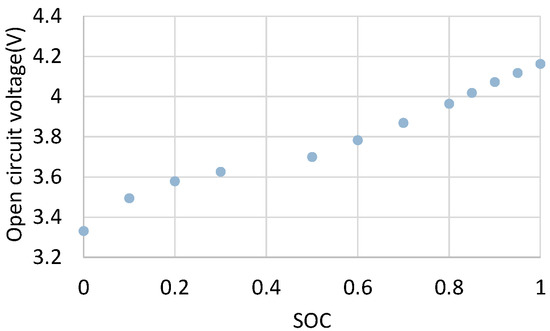 Open-circuit voltage versus the state of charge at 35 °C [6].