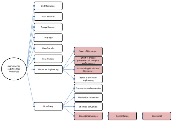 This research was conducted as part of a study of the incorporation of novelty tools during the higher education lessons. The innovation was conducted during 2 academic years in a course named “Biochemical Engineering Principles” which is lectured in the second course of the Biotechnology degree at the University of Granada (Spain). The modules in which the innovation was applied provide the fundamental basis of bioethanol bioengineering based on the biorefinery concept. Figure 1 shows the course framework.