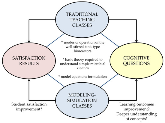 Although, usually, process engineers and scientists use simulation models to investigate biorefinery operations, a recent literature review recognized only a few studies that compared simulations in biorefinery teaching with the traditional classroom teaching [5,17,18,19,20,21]. For example, Ruiz-Ramos et al. [17] reported the use of ASPEN Plus® to design and assess a biorefinery from olive-derived biomass. The survey also suggested that students found this learning approach very useful. Bonde et al. [18] developed and tested a gamified biotech laboratory simulation platform. Potratz [19] demonstrated the value of simulations to enhance students’ knowledge of enzyme kinetics dynamic in an upper-division biochemistry course. Lay and Swan [20] evaluated FermOpt as a tool for teaching fermentation and optimization principles. Authors found FermOpt a relaxed technique to engage student’s attention and interest. In addition, although it was not exactly a modeling-simulation practice, Serrano-Aroca [21] encouraged students with exercises in a virtual bioreactor laboratory.