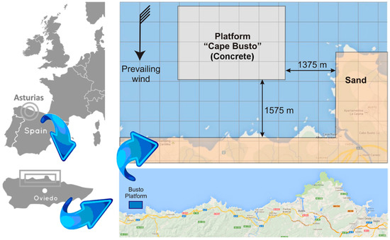 Location of the Cape Busto platform and simulated geometry.