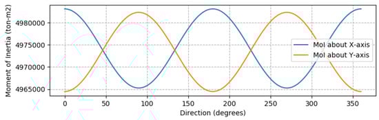 Total structural dynamic moment of inertia (MoI) with changing yaw direction.