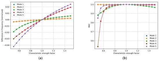 Characteristic soil strength sensitivity. (a) Difference in frequency, (b) MAC value.