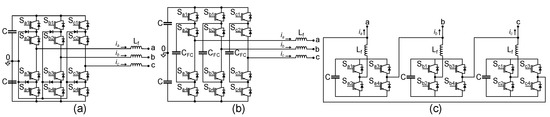 Main topologies of multilevel three-wire APFs: (a) neutral-point-clamped (NPC) converter; (b) flying capacitor (FC) converter; (c) cascaded H-bridge (CHB) converter.