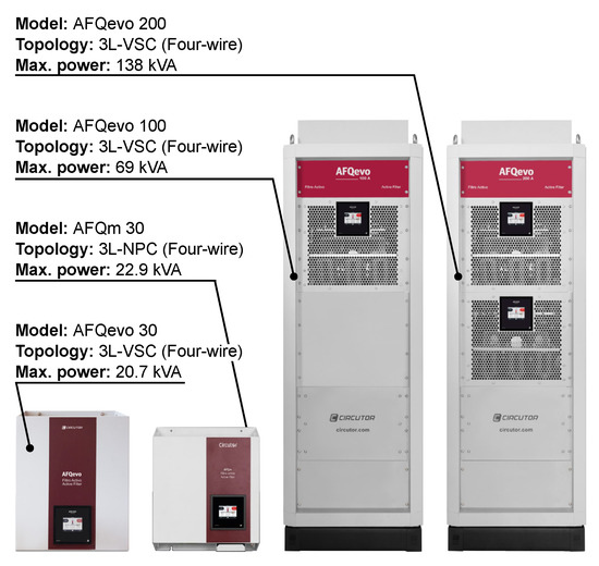 - CIRCUTOR. AFQm Multifunction Active Filter. Available online: http://docs.circutor.com/docs/CT_AFQm_EN.pdf (accessed on 29 June 2020).