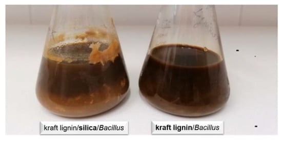 - The proliferation of Bacillus amyloliquefaciens bacterial cells was more intensive in the kraft lignin/silica system, where the cellular biomass was twice as large as in the culture with pure kraft lignin.