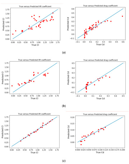 Support vector regression (gamma = “scale”, C = 1.0, epsilon = 0.1 for Cl prediction, 0.01 for Cd prediction)) [