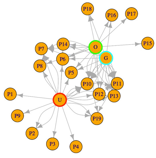 Moreover, factors P1, P3, P4, P9, and P17, despite representing seemingly important features, are the least important factors in optimizing systems for efficient functioning. Indeed, they were almost irrelevant to the analysis performed. Therefore, they are not valuable areas of interest for modeling and optimization. Based on the conducted research, new network topography was created, showing the connection of areas with stakeholder problems. The network structure is shown in Figure 4.