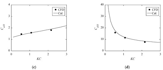 3.1. Validation of the Proposed Global Hydrodynamic Coefficient Models Considering the Effects of Reynolds and KC Numbers