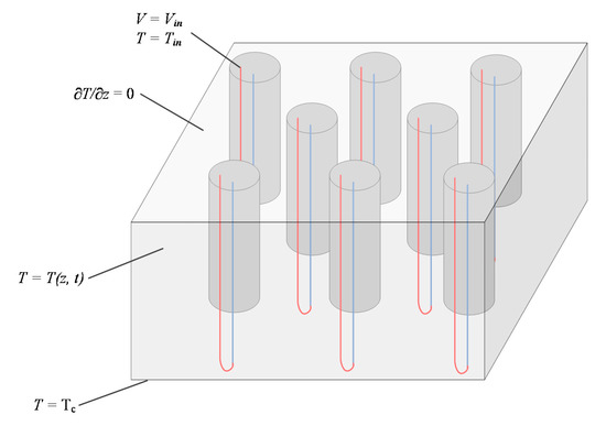 - Beier, R.A. Transient heat transfer in a U-tube borehole heat exchanger. Appl. Therm. Eng. 2014, 62, 256–266. [Google Scholar] [CrossRef]