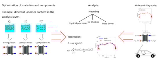Many physically-based or EC models have been developed in order to fit the low frequency impedance features and to evaluate transport parameters as for example oxygen diffusivity and internal flow rate velocity to diagnose flooding states [,,,,].