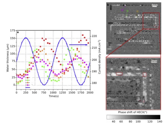 - Wu, Y.; Meyer, Q.; Liu, F.; Rasha, L.; Cho, J.; Neville, T.; Millichamp, J.; Ziesche, R.; Kardjilov, N.; Boillat, P.; et al. Investigation of water generation and accumulation in polymer electrolyte fuel cells using hydroelectrochemical impedance imaging. J. Power Sources 2019, 414, 272–277. [Google Scholar] [CrossRef]