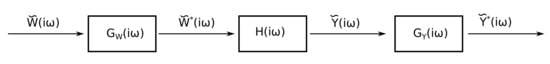 Generally, the system response to a perturbation is described through the corresponding transfer function in frequency domain, obtained by applying the Fourier transform to the system of Equations (11) and (). It reads: