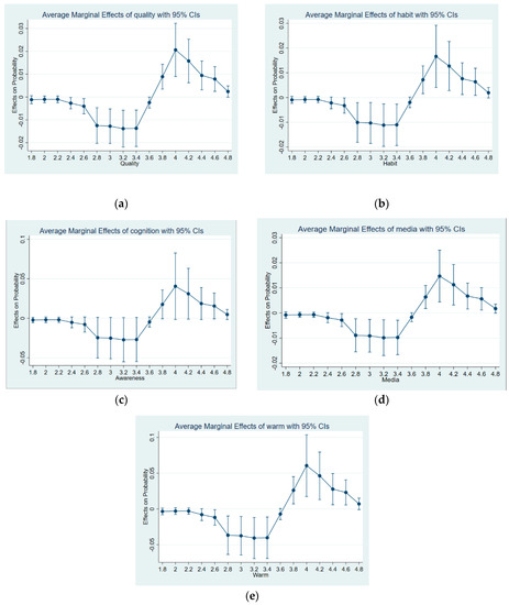 It is worth noting that the regression coefficients of the interaction terms are negative. The interaction term coefficient is negative, but the total effect of residents’ understanding of global warming and low-carbon is positive. Under the multivariate ordered logit regression, the total effect of these two variables is 1.016 + 0.684 − 0.187 = 1.513. Therefore, residents’ understanding of global warming has a positive moderating effect on residents’ understanding of the low-carbon economy, which verifies the theoretical assumption of this paper.