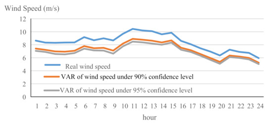 The VAR of wind speed at the confidence levels of 95% and 90%.