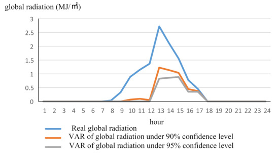 The VAR of global radiation at the confidence levels of 95% and 90%.