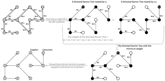 Figure 2 shows how an algorithm for the DST works to impose the role of either a supplier or a consumer, on each prosumer to maintain the minimal operating cost for the Microgrids’ energy services. The prosumers are represented as vertices that are directly related to others by the edges with operational costs in the directed graph