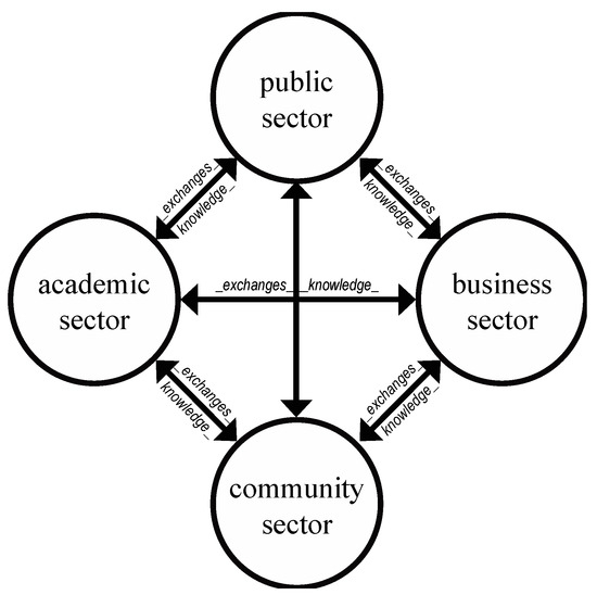 The various “helix” models define bidirectional flows of knowledge over different timescales between the multiple stakeholders. Review suggests that research aligned to the Triple Helix model has clustered around entrepreneurship, business innovation, industrial policy, and regional development [23], with common areas of shared research and knowledge management between universities, industry and government. In so doing, it is reinforcing the idea that the academic sector does have a clear regional association and deep long-term shared research interests with layers of government while at the same time being specifically interested in impactful outputs from any university research. The Triple Helix model describes a form of regional research and innovation policy that is in a constant state of transition. Leydesdorff [24] made use of this model to describe different or unequal forms of overlapping interests in regional research and innovation policy landscape. Hence, the idea of the Triple Helix, is mostly about finding a descriptive model of how the regional dynamics actually operates between the multiple sectors.