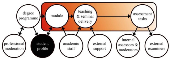 - Professional institutions involved in moderation and validation of the degree programme within which the selected module sits;