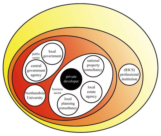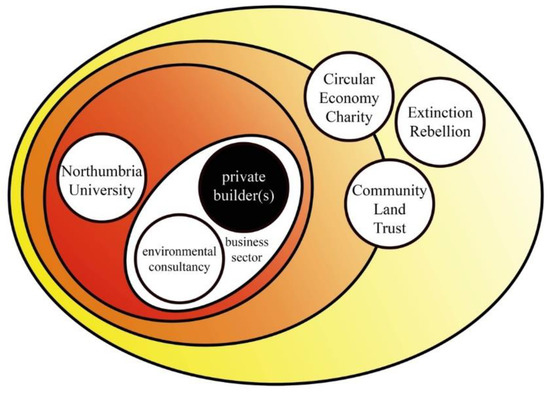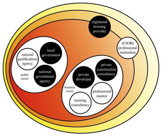 Academic teams from different universities have attempted to introduce collaborative approaches to delivering education on sustainable communities [11,12,13,14]. Inviting industry professionals to share their expertise and professional experiences with the students is probably one of the simplest examples of academia collaborating with the industry. This paper argues that the academic institutions delivering education for sustainable communities to the students on ABE courses must attempt to gain much greater engagement with and active participation of a wide range of stakeholders including professional bodies (viz., Institution of Civil Engineers (ICE), Institute of Structural Engineers (IStructE), Royal Institution of Chartered Surveyors (RICS), Royal Town Planning Institute (RTPI), Royal Institute of British Architects (RIBA), Chartered Institute of Building (CIOB), etc.), regional and central government representatives, charitable organisations (such as Ministry of Building Innovation + Education (MOBIE)) involved in sustainable communities and the general populace who care deeply for the health of socio-economic and environmental systems. The authors have developed a cascade of models which demonstrate increasing levels of collaboration and their potential positive impact on the effectiveness of education on sustainable communities.