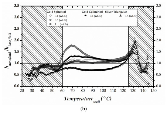 Different optical diagnostic techniques are used and combined to characterize fluid flow and heat transfer characteristics when using these complex fluids. For instance, Kay et al. [26] combined phase Doppler interferometry with high-speed visualization since the first technique is limited when measuring close to the wall. However, a detailed analysis of the hydrodynamics vs. thermal mechanisms and their intricate relation with the nanoparticles’ concentration is still open for further research.