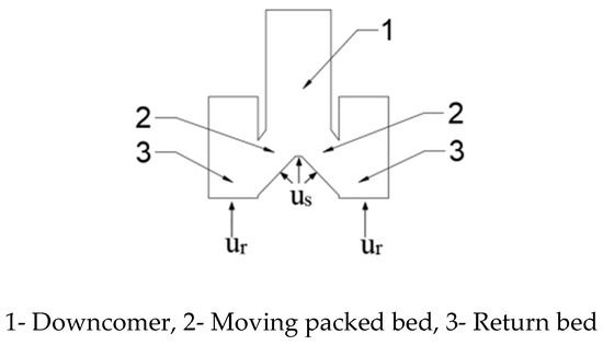 The 350 MW supercritical CFB boiler is a Direct Current (DC) furnace with supercritical parameters and variable pressure operation. The boiler type is SG-1208/25.4-M4605. It adopts a circulating fluidized bed combustion mode; single-chamber, steam-cooled cyclone gas-solid separator; primary intermediate reheating; balanced ventilation; and solid slag discharge. The boiler is mainly composed of a suspended full-film water-cooled wall furnace, steam-cooled cyclone separator, returning system, and convective heating surface of the backpass channel. The geometric dimensions of the main components are shown in Table 1. The return valve is one of the key components of the CFB boiler. Figure 1 is a schematic diagram of the return valve, where us and ur are separately the velocities of the loose air and return air.