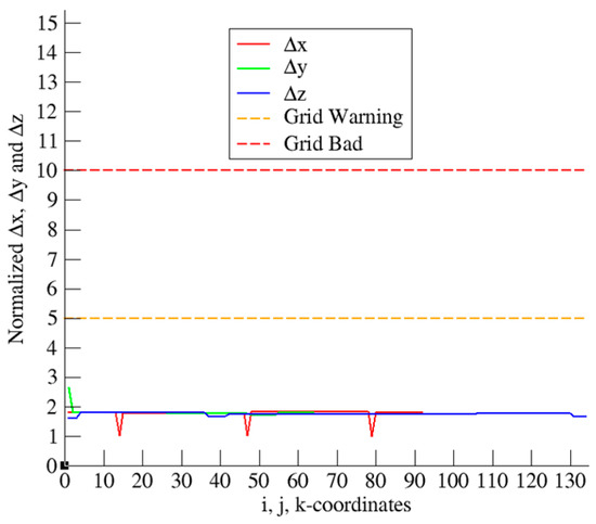 Barracuda adopts the size-adaptive Cartesian grid method to divide computational grids. The grid generator generates computational grids according to the number of Cartesian grids, grid dividing lines, and geometric model boundaries set by the user. A grid quality check of the 800,000-mesh model is shown in Figure 15.