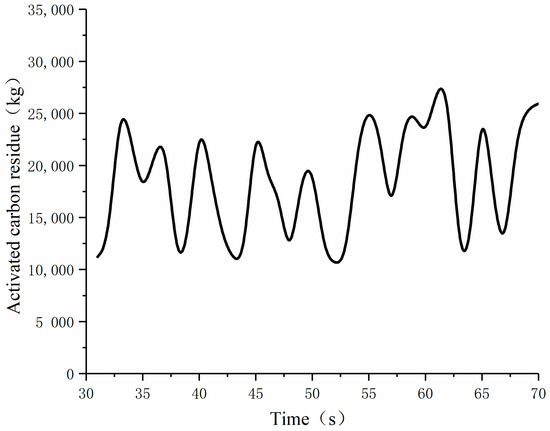 (4) CPFD method was used to estimate the CFB boiler residual char stock. In the process of load change, the dynamic characteristics of CFB boiler residual char were analyzed. After the boiler reaches stable operation, the residual char fluctuated from 11,000 kg to 16,000 kg, accounting for about 3.7% of the total bed material. The residual char did not change much and was in a dynamic balance. During the load-up phase, the average residual char was 17,500 kg, which was significantly higher than the residual char during the boiler start-up phase. In the load-down phase, the average residual char was 15,000 kg, which was lower than the residual char in the load-up stage. The burning rate of residual char and the coal feeding rate in the load-down phase do not match.