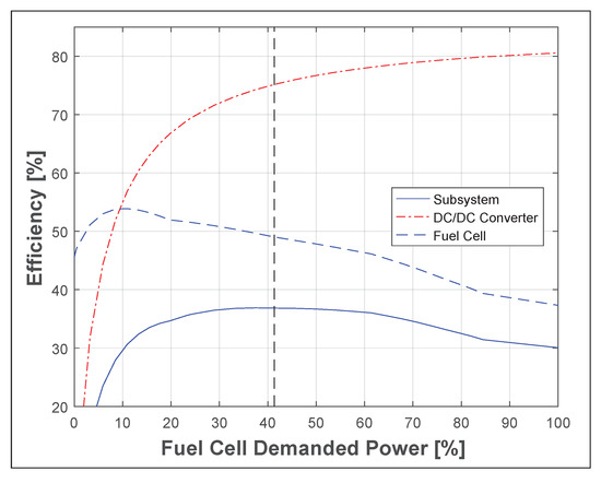 Primarily, a larger fuel cell will be able to provide a higher maximum power improving the vehicle’s straight-line performance (if not already limited by the electric motor). However, there are a few secondary benefits of using a fuel cell with a higher peak power. Firstly, the increased power overhead will likely improve the response of the vehicle, improving driveability concerns [2] with respect to power availability in the event of a sudden potential acceleration [3]. Secondly, the operating power will likely be shifted towards a more efficient operating region because fuel cells are typically most efficient at just 30% of their maximum power [4]. Finally, by operating the fuel cell further from its maximum power, the lifetime of the fuel cell can also be extended. This is not only due to thermal degradation observed at high power, but also due to higher power availability for the avoidance of transient loading, a degradation mechanism which affects the catalyst and membrane in particular and known to be very significant for transport applications [5,6,7,8,9].