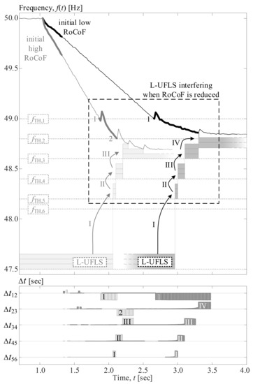 - In general, the number of L-UFLS substages depends on the desired level of active power imbalance fine-tuning. Theoretically, full adaptability to any situation could be achieved with an infinite number of load shedding steps. However, physical devices in the real world (relays, circuit-breakers, etc.) require some time to respond to a trip signal, so a large number of substages does not necessarily mean better performance due to their possible overlap. For example, RG CE—Policy 5 [3] recommends a maximum of ten UFLS shedding steps in order to avoid such a situation.