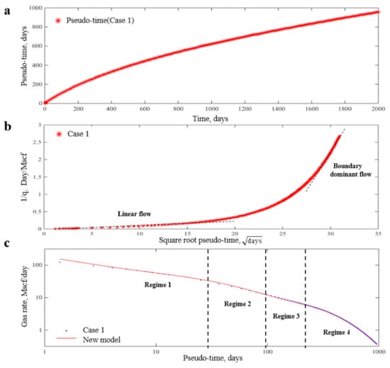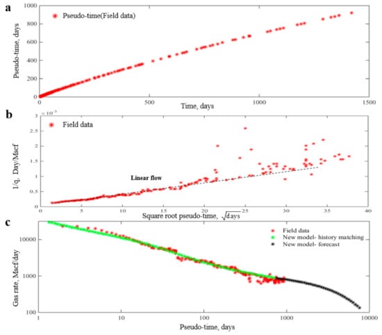 - El-Banbi, A.H.; Wattenbarger, R.A. Analysis of Linear Flow in Gas Well Production. In Proceedings of the SPE Gas Technology Symposium, Calgary, AB, Canada, 15–18 March 1998. SPE Paper 39972-MS. [Google Scholar]