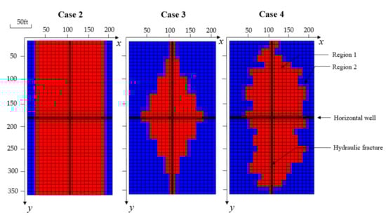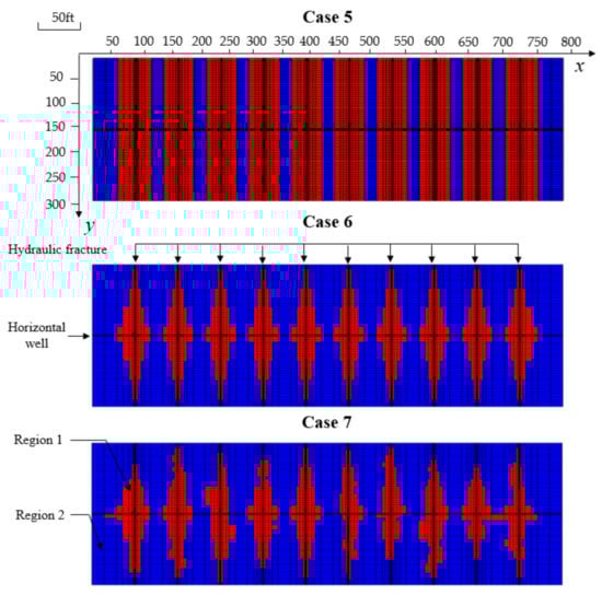 The boundary conditions are defined as no-flow at top and bottom of the reservoir. Additionally, the both ends of y-direction can also be regarded as no-flow boundaries.
