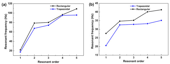 Resonant frequency of Case 1-based (a) and Case 2-based (b) devices.