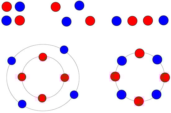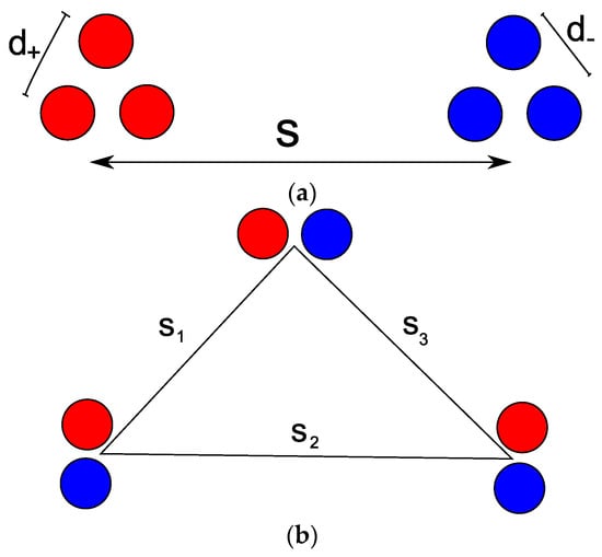 By analyzing several examples offered by literature in the subsequent section, we are convinced that the arrangements with as small as possible are good candidates to keep a high degree of symmetry for current distribution. This criterion has to be modified when the phase barycenters are collinear, because then the triangle area is zero. Without loss of generality, we can assume then that . In such a case, it is convenient to introduce discrepancy between phase barycenters as follows: