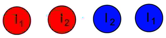 Let us notice that all above-given configurations exhibit a common feature, namely the barycenters of supply and return wires approximately overlap. It is evident that there exists a certain symmetry of cable placement in each considered case. At the same time, highly asymmetric layouts (referred to as asymmetry of the first (Figure 9) and the second (Figure 10) kind) are not recommended.