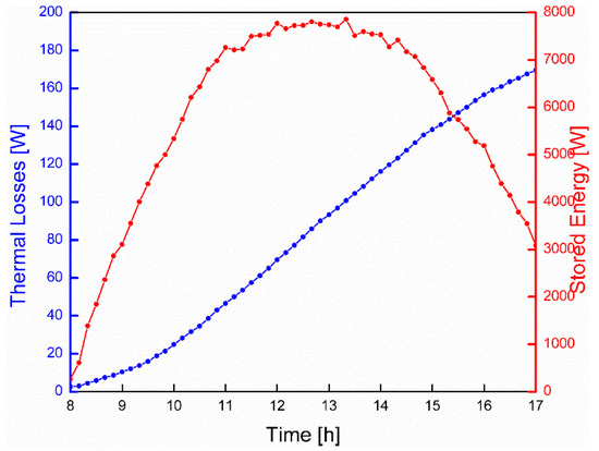- The heat losses of the storage tank exhibited a linear variation, as they followed the behavior of the storage tank temperatures.