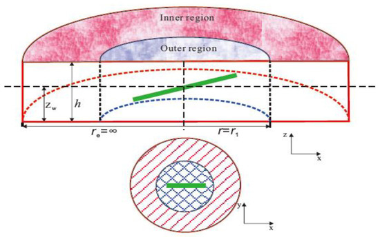 Schematic diagram of highly deviated well in dual-porosity composite gas reservoir.