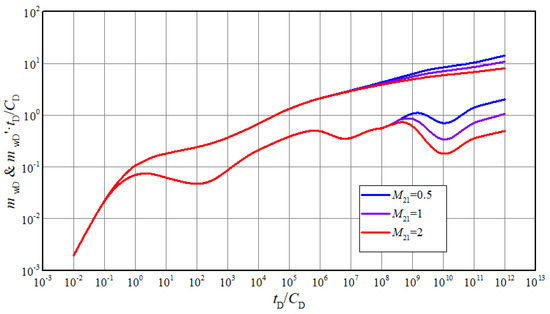 The effect of mobility ratio on transient pseudo-pressure and derivative curves.