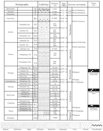 - Huang, H.Y.; He, D.F.; Li, Y.Q.; Li, J.; Zhang, L. Silurian tectonic-sedimentary setting and basin evolution in the Sichuan area, southwest China: Implications for palaeogeographic reconstructions. Mar. Pet. Geol. 2018, 92, 403–423. [Google Scholar] [CrossRef]
