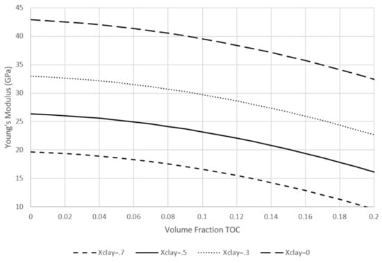 7], Young’s modulus decreases monotonically with increasing volume fractions of clay or organic matter (