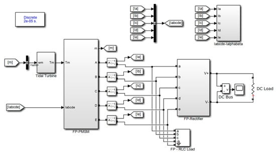 At present, one of the research focuses of MPMs lies in five-phase machines with third harmonic windings (THWs) in stators. Machines’ output torque could be increased with the interactions of the third harmonic current and magnetic field []. Meanwhile, the injection of the third harmonic current into a five-phase machine can reduce magnetic saturation of the stator core and improve machine efficiency []. This kind of five-phase machine has important applications in marine energy generation and ship propulsion systems and, therefore, a five-phase permanent magnet synchronous generator (FP-PMSG) with THWs is adopted in this paper for MCGSs.