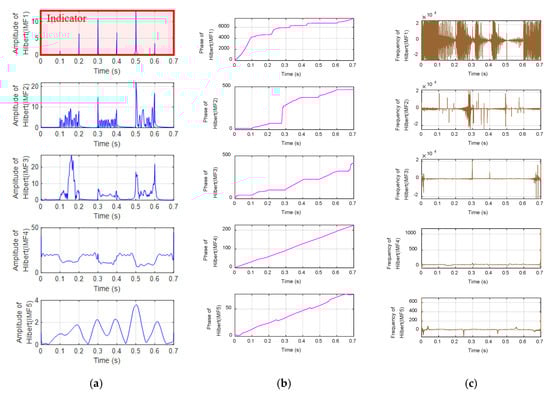 With Equation (11), the instantaneous amplitudes of the IMFs are calculated and selected as an OCF indicator of the FP-PMSG in this paper. In order to realize fault identification when OCFs occur, the instantaneous amplitude, phase and frequency are grouped together as fault features for further fault diagnosis.