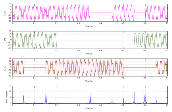- in the 3rd simulation, from 0 to 0.1 s and from 0.2 to 0.3 s, the MCGS was running normally, while from 0.1 to 0.2 s, a single-phase OCF happened in phase c;