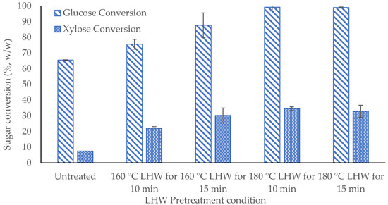 3.4. Effect of LHW Pretreatment on Sugar Conversion