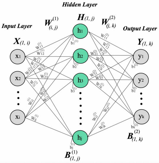 The inputs x1, …xk to neurons are multiplied by weights wki. Then, they are summed up with the constant bias term θi. As a consequence, the calculating ni is the input to the activation function g [32,33].