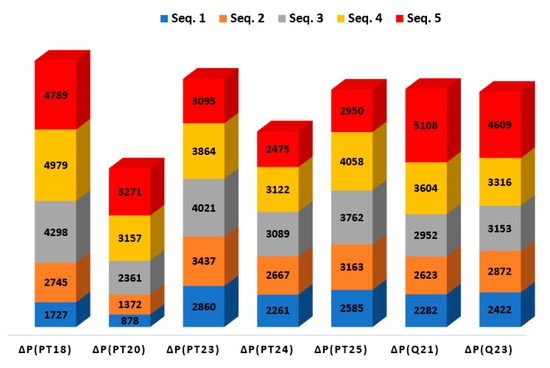 An overview of the efficiency of PCMs is shown in Table 8 and Table 9. The maximum values were obtained for the Seq. 1 models. This was mainly due to the definition of the relative annual energy savings since the was quite low for sequence 1 models and, therefore, even small annual energy savings resulted in a high () value. The exact opposite was seen for the total values, meaning that the total energy saved tended to rise with increasing sequence numbers for both buildings irrespective of the NV setting.
