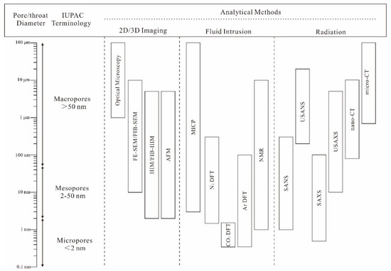 Methods used to investigate pore characteristics in shale (modified from [3]).