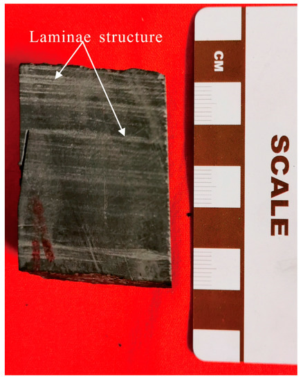 The size of the sample has a great influence on the determination of the petrophysical parameters of shale using different measurement methods. The heterogeneity of shale is characterized by rich microstructural features (microfractures and laminae), complex components (organic matter and minerals), and multi-scale pore structure (from nanometers to micrometers) [56,57,58]. As shown in Figure 11, for the same intact shale sample, sampling at different locations for testing may produce different results. In addition, based on the analysis of Section 4.1, the difference in the results of particle size variation obtained by several methods is primarily related to the different theoretical bases.
