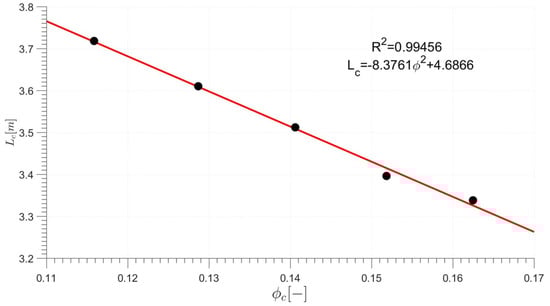 Figure 12 presents the obtained Lc parameter values at different operational points. One can observe that this value decreased slightly with mass flow rate. Approximation with the first order polynomial gave a satisfactory value coefficient of determination equal to 0.99, which proves very good agreement between the results and the linear approximation.