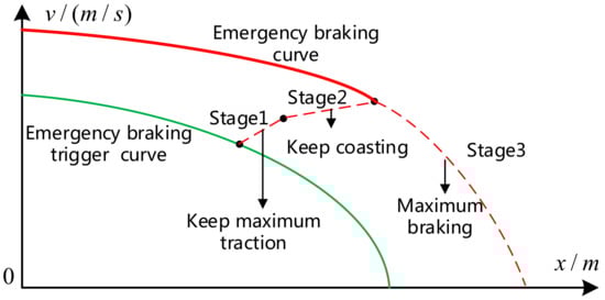 Stage1: In this stage, the train accelerates with the maximum traction acceleration, and the acceleration time is the sum of the traction cutoff delay and the braking system action delay.