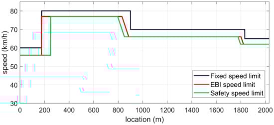 Firstly, the metro line has a fixed speed limit from the line. In addition, the metro also has a security protection mechanism to ensure that emergency braking is feasible in any position that the train cannot cross the fixed speed limit; this mechanism is called emergency braking intervention (EBI). To ensure that the metro does not exceed the fixed speed limit during emergency braking under any circumstances, the EBI protection considers such an extreme case: